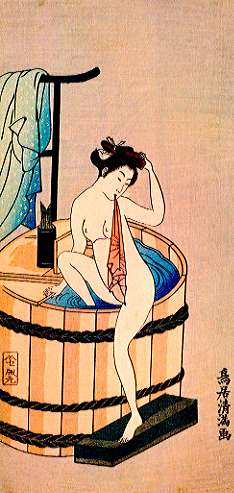 この絵は銭湯ではなく家庭用の据え風呂を描いた物です。