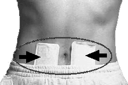 カイロの貼り方 お臍(へそ)の周りを触ってみて冷たい感じがするところに貼ってください。お臍の両脇に立てに貼りますが、どちらか一方だけ冷たい場合は冷たい方にだけ貼っても構いません。ただ,体質に合わない方が居ますので御注意下さい。