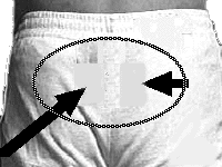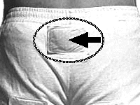 カイロの貼り方 尾骨のやや上辺りに横長に貼って下さい。この部分はつねっても痛みを余り感じませんので,物足りない方は2つに増やしてみて下さい。