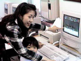 ●ファインアーティストでお絵描きをしている、りんたろうくんとお母さん。 子どもにとっては、パソコンもおもちゃの延長なのです。 自由に使わせてあげることにより、マウスやキーボードに親しんでいきます。 やがて、彼らが大人になるころは、ネットワークを自由につかいこなす人間になっていくでしょう。