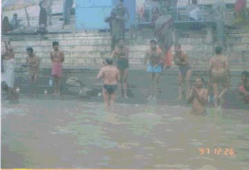 「冥途 IN INDIA」 ==インド旅行記==第五回 ホテル ヒンドスタン インターナショナル ホテルの中庭ではクリスマスディナーショウをやっていた。すばらしい声が外まで響いている。入場料650ルピー。高いのでやめた。 いよいよバナーラスの沐浴風景