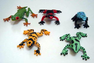 おなじみ、毒ガエルたち。実は毒のないのもいる。