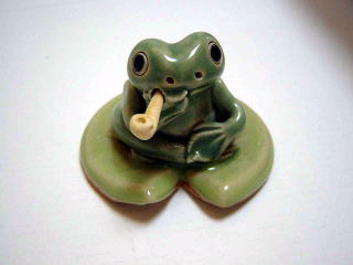 たばこ吸いカエル親分 手塚治虫記念館近くの店に売っている。 店の人はけっこうこの作品に自信をもっていてしきりに「よくできてるでしょう」と言ってすすめていたが、値段もけっこうよかった。 |