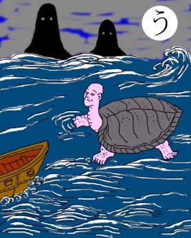 読み札 海坊主 トドのつまりは 大海亀 妖怪名 海坊主 (うみぼうず) 海坊主の正体は大海ガメだというのが、江戸時代の百科事典「和漢三才図会」に書かれています。人面の亀ですから、やっぱり妖怪でしょう。 |