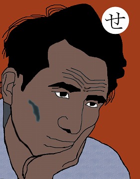 読み札 生年百に満たず、常に千歳の憂いを懐く 解説 太宰がそういう人だったというわけではない。ただ憂い顔がこのように絵になる人はちょっといない。ちょうどこれを書いている時、「愛妻と愛車と世界一周 足かけ10年、旅の間に三男一女」というアルゼンチン人の一家が日本に来た記事を見た。所持金35万円だとか。車が故障しても金を払ったことはほとんどないという。絵を売ったり、カレンダーを売ったりして糊口をしのいでいるらしい。どうやっても人は生きていけるんだなあと思う。しかし、いったん「憂いを懐」いてしまうと、それはもうアリ地獄なのである。 駄目だと思うと駄目なのである。大丈夫だと思うと大丈夫なのである。人間失格と思えば失格なのである。 |