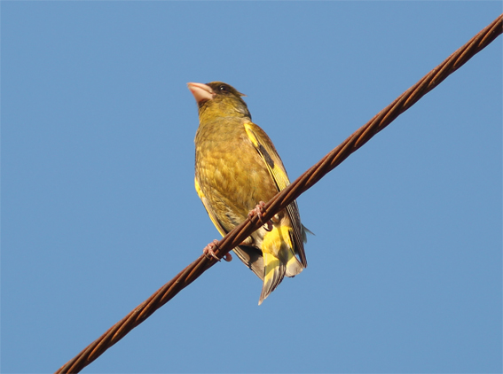カワラヒワくん、またはカワラヒワさん。ちょっと顔が強面。高田川、2015.5.24