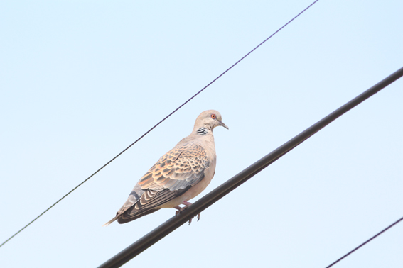 キジバトくんまたはキジバトさん。目がちょっと怖い。声は何か歌っているような感じ。